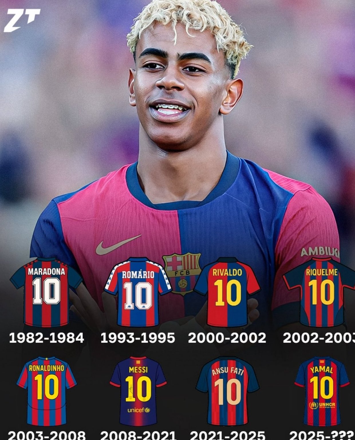 06月29日讯 据巴萨跟队记者罗梅罗透露,巴萨将在7月1日正式官宣17岁的亚马尔下赛季身披10号球衣。